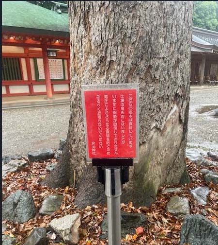 10:20 頃~ 氷川神社参道及び境内の樹木の状況(健全度や空洞化)、土壌改良について荻原樹木医よりご説明いただきます。