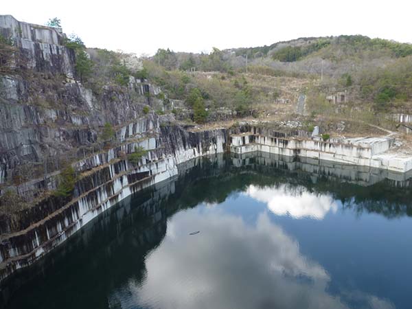 石切山脈の採石場は大きな湖になっていて人気の観光地です。