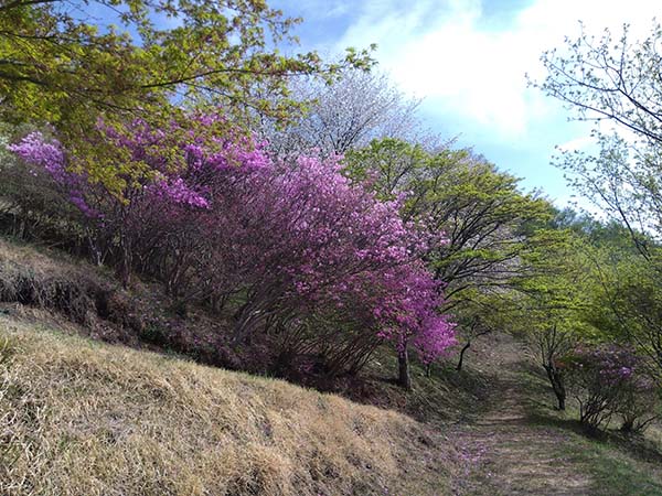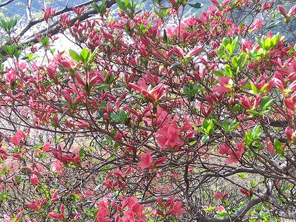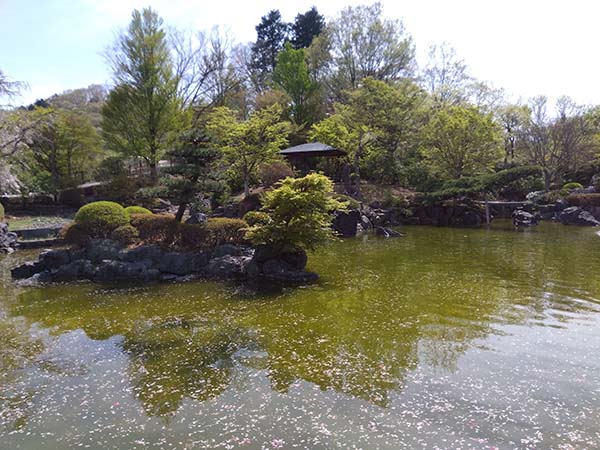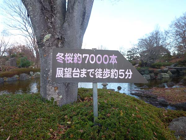 群馬県藤岡市の桜山公園は、国の名勝および天然記念物に指定されている冬桜の名所で、三波石を使った日本庭園があります。