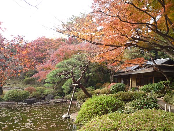 庭園美術館の茶室と紅葉(東京都)